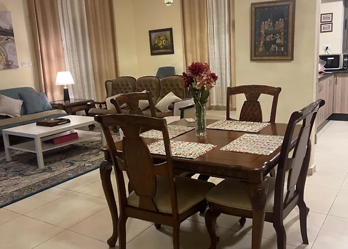 Staying at Sunset Balcony Retreat - Spacious And Comfortable 2 Bedrooms 2 Bathrooms Amman apartment, guests can relax on a patio a 10-minute drive from Al Hussein National Public Park. Wi-Fi and a free private car park are also available at this apartment.